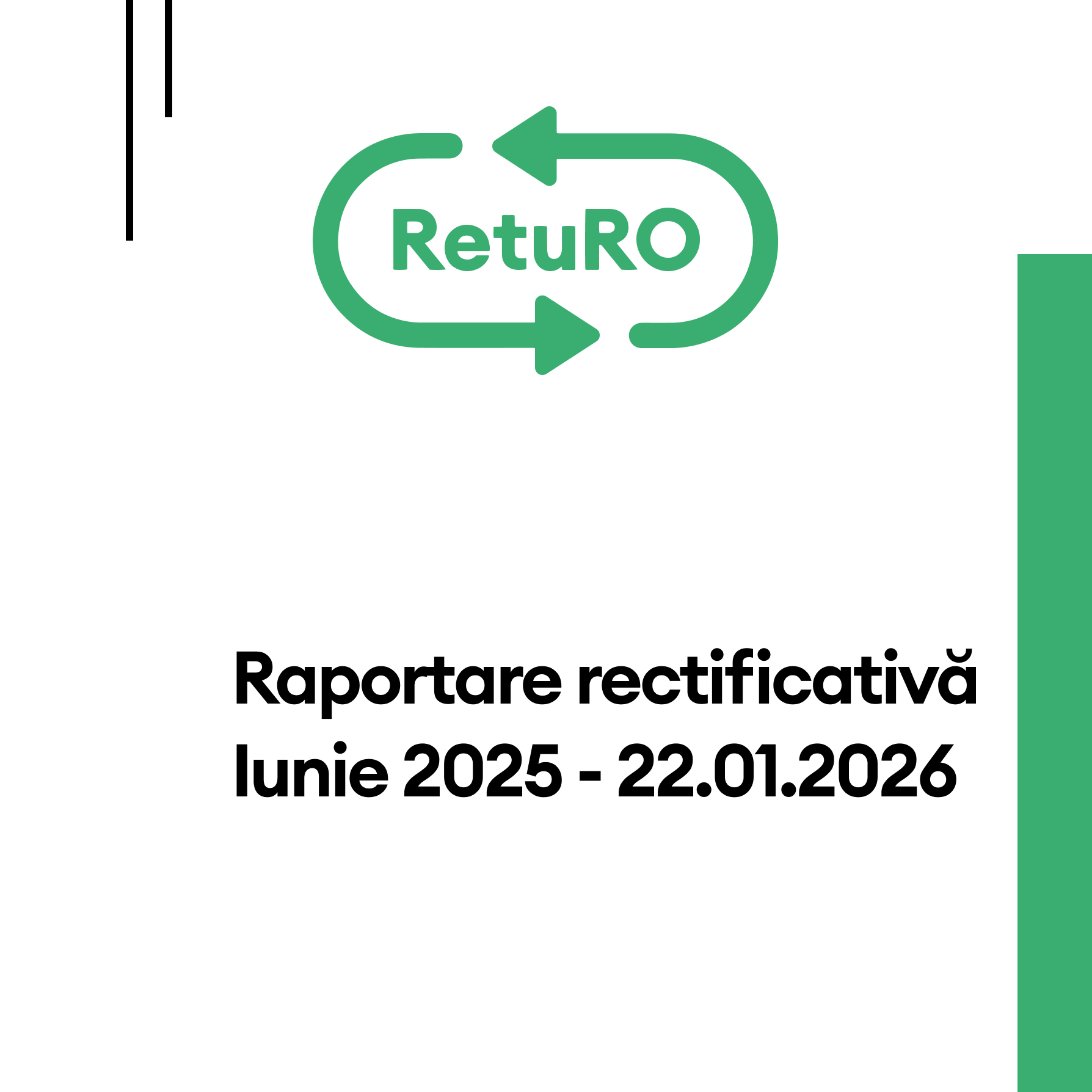 Raportare Acasă Raportare Coduri de bare înregistrare în Registrul Ambalajelor la 26.01.2026 Descarcă documentul Producători contractați până la 12.01.2026 Descarcă documentul Producători - contracte suspendate 23.01.2026 Descarcă documentul Producători - contracte reziliate 23.01.2026 Descarcă documentul Raportare finala pe localități, Ianuarie - Decembrie 2025 Descarcă documentul Raportare finala pe județe, Ianuarie - Decembrie 2025 Descarcă documentul Raportare rectificativă, Iunie 2025 – 22.01.2026 Descarcă documentul Raportare finală RetuRO, Decembrie 2025 - 21.01.2026 Descarcă documentul Raportare pe localități RetuRO, Decembrie 2025 - 21.01.2026 Descarcă documentul Raportare pe județe RetuRO, Decembrie 2025 - 21.01.2026 Descarcă documentul Raportare preliminară RetuRO, Decembrie 2025 - 15.01.2026 Descarcă documentul Raportare finală RetuRO, Noiembrie 2025 - 22.12.2025 Descarcă documentul Raportare pe localități RetuRO, Noiembrie 2025 - 22.12.2025 Descarcă documentul Raportare pe județe RetuRO, Noiembrie 2025 - 22.12.2025 Descarcă documentul Raportare preliminară RetuRO, Noiembrie 2025 - 15.12.2025 Descarcă documentul Raportare finală RetuRO, Octombrie 2025 - 25.11.2025 Descarcă documentul Raportare pe localități RetuRO, Octombrie 2025 - 25.11.2025 Descarcă documentul Raportare pe județe RetuRO, Octombrie 2025 - 25.11.2025 Descarcă documentul Raportare preliminară RetuRO, Octombrie 2025 - 15.11.2025 Descarcă documentul Raportare finală RetuRO, Septembrie 2025 - 25.10.2025 Descarcă documentul Raportare pe localități RetuRO, Septembrie 2025 - 25.10.2025 Descarcă documentul Raportare pe județe RetuRO, Septembrie 2025 - 25.10.2025 Descarcă documentul Raportare preliminară RetuRO, Septembrie 2025 - 15.10.2025 Descarcă documentul Raportare finală RetuRO, August 2025 - 25.09.2025 Descarcă documentul Raportare pe localități RetuRO, August 2025 - 25.09.2025 Descarcă documentul Raportare pe județe RetuRO, August 2025 - 29.09.2025 Descarcă documentul Raportare preliminară RetuRO, August 2025 - 15.09.2025 Descarcă documentul Lista este actualizată pe baza datelor raportate de comercianții înscriși și activi în Sistemul de Garanție-Returnare (SGR). Descarcă documentul Raportare localități Ianuarie – Iulie 2025 Descarcă documentul Raportare finală RetuRO, Iulie 2025 - 25.08.2025 Descarcă documentul Raportare pe localități RetuRO, Iulie 2025 - 25.08.2025 Descarcă documentul Raportare pe județe RetuRO, Iulie 2025 - 25.08.2025 Descarcă documentul Raportare preliminară RetuRO, Iulie 2025 - 15.08.2025 Descarcă documentul Raportare finală RetuRO, Iunie 2025 - 25.07.2025 Descarcă documentul Raportare pe localități RetuRO, Iunie 2025 - 25.07.2025 Descarcă documentul Raportare pe județe RetuRO, Iunie 2025 - 25.07.2025 Descarcă documentul Raportare preliminară RetuRO, Iunie 2025 - 15.07.2025Versiune rectificativă (16.07.2025) Descarcă documentul Raportare finală RetuRO, Mai 2025 - 25.06.2025 Descarcă documentul Raportare pe localități RetuRO, Mai 2025 - 25.06.2025 Descarcă documentul Raportare pe județe RetuRO, Mai 2025 - 25.06.2025 Descarcă documentul Raportare preliminară RetuRO, Mai 2025 - 15.06.2025 Descarcă documentul Raportare finală RetuRO, Aprilie 2025 - 25.05.2025 Descarcă documentul Raportare pe localități RetuRO, Aprilie 2025 - 25.05.2025 Descarcă documentul Raportare pe județe RetuRO, Aprilie 2025 - 25.05.2025 Descarcă documentul Raportare preliminară RetuRO, Aprilie 2025 - 15.05.2025 Descarcă documentul Raportare finală RetuRO, Martie 2025 - 25.04.2025 Descarcă documentul Raportare pe localități RetuRO, Martie 2025 - 25.04.2025 Descarcă documentul Raportare pe județe RetuRO, Martie 2025 - 25.04.2025 Descarcă documentul Raportare preliminară RetuRO, Martie 2025 - 15.04.2025 Descarcă documentul Raportare finală RetuRO, Februarie 2025 - 25.03.2025 Descarcă documentul Raportare pe localități RetuRO, Februarie 2025 - 25.03.2025 Descarcă documentul Raportare pe județe RetuRO, Februarie 2025 - 25.03.2025 Descarcă documentul Raportare preliminară RetuRO, Februarie 2025 - 15.03.2025 Descarcă documentul Raportare pe localități RetuRO, Ianuarie 2025 - 25.02.2025 Descarcă documentul Raportare pe județe RetuRO, Ianuarie 2025 - 25.02.2025 Descarcă documentul Raportare finală RetuRO, Ianuarie 2025 - 25.02.2025 Descarcă documentul Raportare preliminară RetuRO, Ianuarie 2025 - 15.02.2025 Descarcă documentul Raportare localități 2024 Descarcă documentul Raportare județe 2024 Descarcă documentul Raportare rectificativa Ianuarie - Noiembrie 2024 Descarcă documentul Raportare pe localități RetuRO, Decembrie 2024 - 25.01.2025 Descarcă documentul Raportare pe județe RetuRO, Decembrie 2024 - 25.01.2025 Descarcă documentul Raportare finală RetuRO, Decembrie 2024 - 25.01.2025 Descarcă documentul Raportare preliminară RetuRO, Decembrie 2024 - 15.01.2025 Descarcă documentul Raportare pe localități RetuRO, Noiembrie 2024 - 25.12.2024 Descarcă documentul Raportare pe județe RetuRO, Noiembrie 2024 - 25.12.2024 Descarcă documentul Raportare finală RetuRO, Noiembrie 2024 - 25.12.2024 Descarcă documentul Raportare preliminară RetuRO, Noiembrie 2024 - 15.12.2024 Descarcă documentul Raportare pe localități RetuRO, Octombrie 2024 - 25.11.2024 Descarcă documentul Raportare pe județe RetuRO, Octombrie 2024 - 25.11.2024 Descarcă documentul Raportare finală RetuRO, Octombrie 2024 - 25.11.2024 Descarcă documentul Raportare preliminară RetuRO, Octombrie 2024 - 15.11.2024 Descarcă documentul Raportare pe localități RetuRO, Septembrie 2024 - 25.10.2024 Descarcă documentul Raportare pe județe RetuRO, Septembrie 2024 - 25.10.2024 Descarcă documentul Raportare finală RetuRO, Septembrie 2024 - 25.10.2024 Descarcă documentul Raportare preliminară RetuRO, Septembrie 2024 - 15.10.2024 Descarcă documentul Raportare pe localități RetuRO, August 2024 - 25.09.202