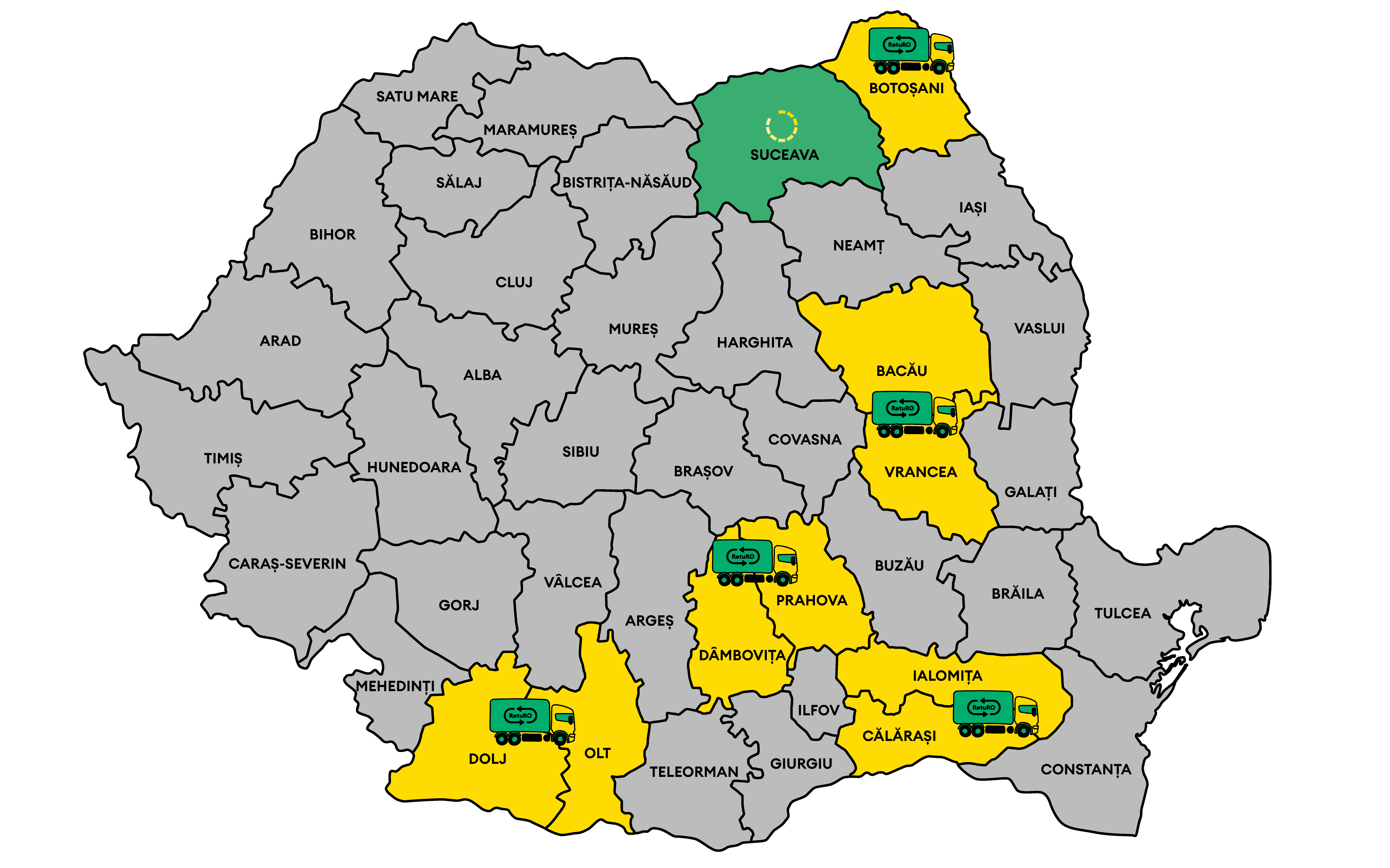 RVM Mobil este activ în județele Bacău, Vrancea, Prahova, Dâmbovița, Dolj, Olt, Botoșani, Călărași și Ialomița.